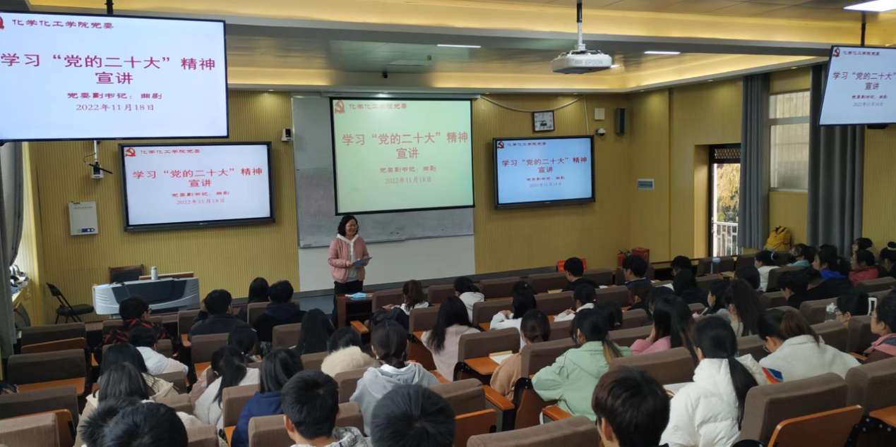 曲剧从党的二十大会议概况、重要意义、主要内容三个方面,对党的二十大精神作了宣讲和阐释,并结合自己学习和人才培养、思想教育、学生成长实际,与青年学生交流了认识和体会,勉励青年学生要点燃理念信念的不灭航灯,勇挑接续奋斗的时代重任,练就建功时代的过硬本领,做有理想、敢担当、能吃苦、肯奋斗的新时代青年。