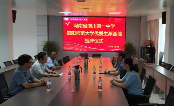 为提高学校生源质量,扎实推进永利集团304am登录2023年度招生宣传工作,7月4日,永利集团304am登录党委书记郭鹏、副书记曲剧,辅导员冷向宇、翟成辉一行前往河南省潢川第一中学开展招生宣传暨优质生源基地共建活动。潢川一中校长张建华等学校领导参加会见洽谈,共商建设。