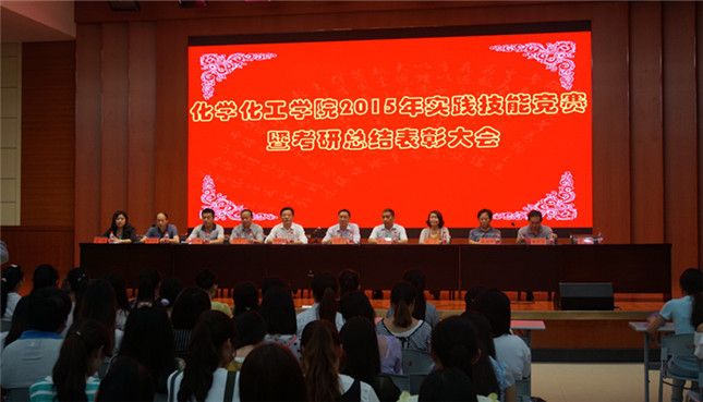 志存高远,放飞梦想;脚踏实地,彰显魅力。为提高同学们的学习劲头,鼓舞他们的考研斗志,6月2日晚,永利集团304am登录2015年实践技能竞赛暨毕业生考研总结表彰大会在逸夫楼报告厅隆重举行。副校长刘彦明,党委宣传部部长丁少锋,团委书记王建旭,教务处副处长祁传达,学生处副处长赵晨,化院党总支书记周涛,院长杨性坤,副院长归风铁、骆定法莅临大会现场,各年级辅导员携考取研究生的毕业生,2012级全体学生,2013级和2014级学生代表共同参加了本次大会,大会由化院党总支副书记宋力主持。