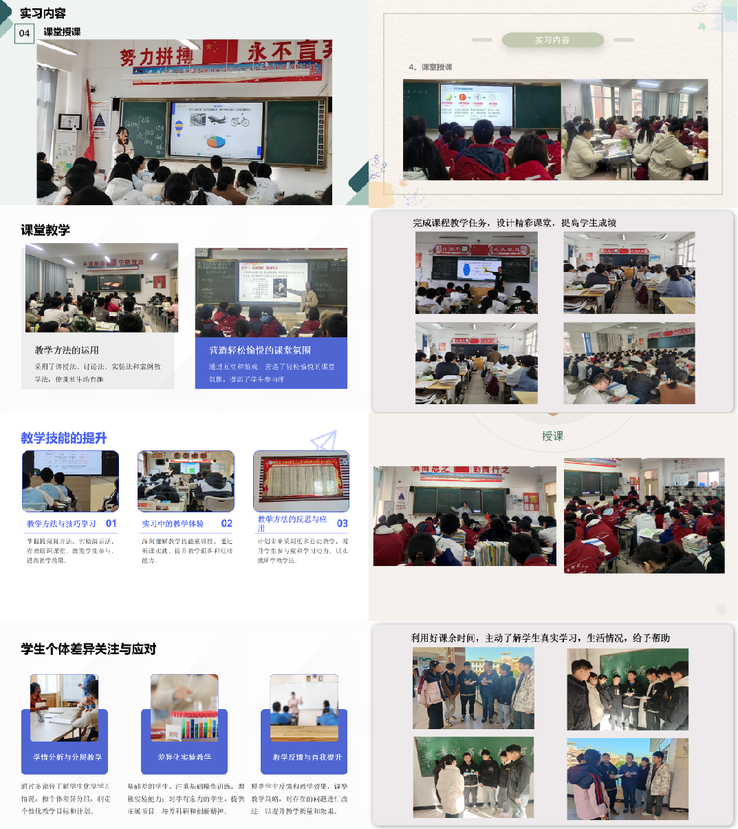 正值中学处于期末考试复习的关键阶段,为不影响实习中学正常的教育教学活动,20237位教育硕士精心录制了PPT电子讲稿,准备了文档材料,打包发送给各位专家老师,向大家汇报了在中学一线实习期间,在课堂教学、班级管理、教育调研等方面的丰富经历与心得体会,展示了自己在教学方法探索、课堂互动创新及班级管理等方面的成长和收获,彰显了出色的实践能力和反思意识。