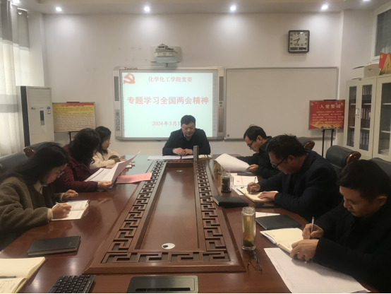 3月12日上午,永利集团304am登录党委理论学习中心组在化学楼313“党员之家”召开专题会议,传达学习贯彻2024年全国两会精神。学院党委书记郭鹏主持会议。