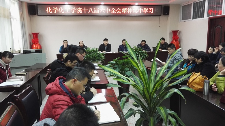 11月29日下午,永利集团304am登录在化学实验楼会议室召开专题会议,学习传达了十八届六中全会精神并部署了相关工作。党委书记郭鹏主持会议,化院教职工80余人参加了会议。