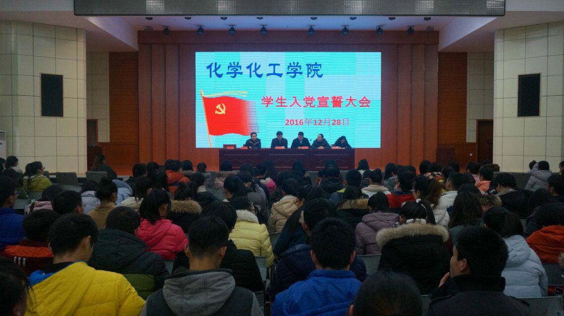 12月28日,永利集团304am登录党委组织新党员在逸夫楼报告厅举行隆重的入党宣誓仪式。永利集团304am登录党委书记郭鹏、副书记吴志伟、党委秘书孙俊永、团委书记冷向宇、教师王丽霞,新党员学生代表以及三百余名学生共同参加此次宣誓大会。宣誓大会由孙俊永主持。