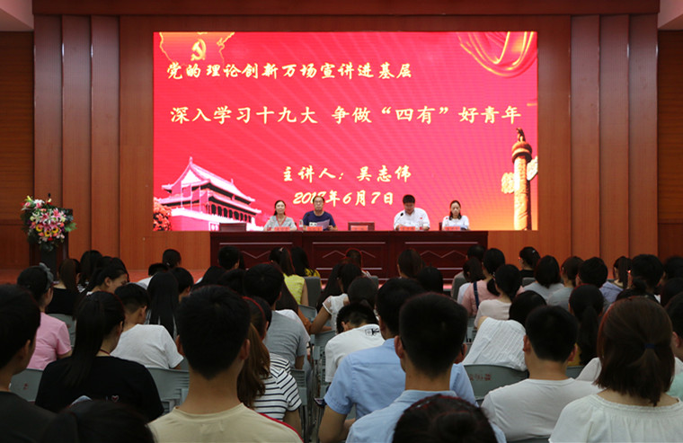 6月7日,永利集团304am登录在逸夫楼报告厅举办了“党的理论创新万场宣讲进基层”报告会。永利集团304am登录全体学生党员、各班班委、学生会全体成员两百余人参加了此次会议。