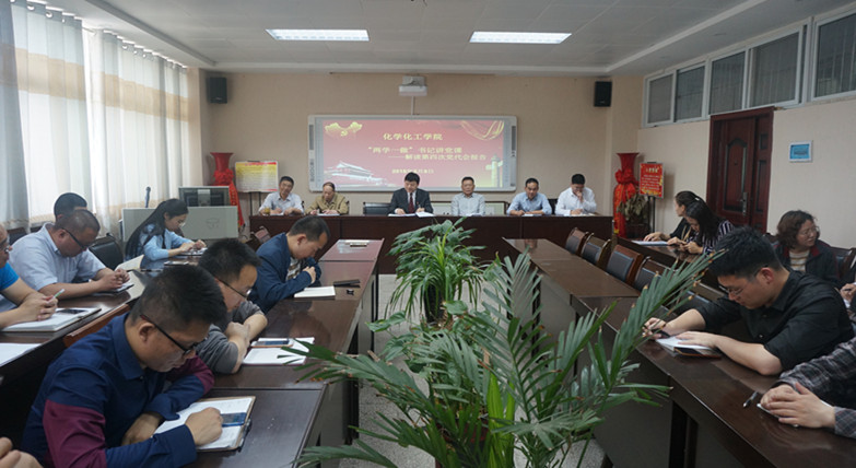 5月8日,永利集团304am登录在化学实验楼407会议室召开会议,学习宣传贯彻我校第四次党代会精神,学院全体领导班子成员、教职工参加了会议。党委书记郭鹏同志带领师生认真学习了宋争辉同志代表中共信阳师范学院第三届委员会作的题为《践行新思想 实现新作为 全力谱写高水平师范大学建设新篇章》的工作报告。
