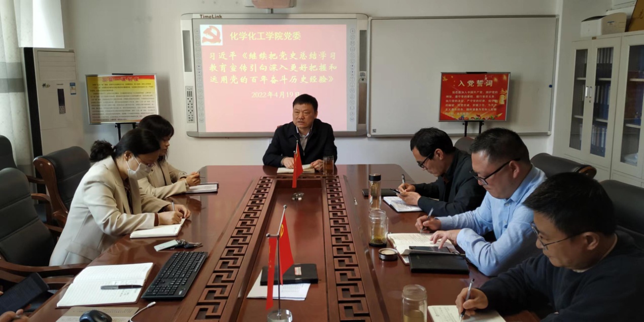 4月19日上午,永利集团304am登录党委理论学习中心组在实验楼“党员之家”召开理论学习会,集中学习了习近平总书记在省部级主要领导干部学习贯彻党的十九届六中全会精神专题研讨班开班式上的讲话精神。学院党委书记郭鹏主持学习研讨活动。