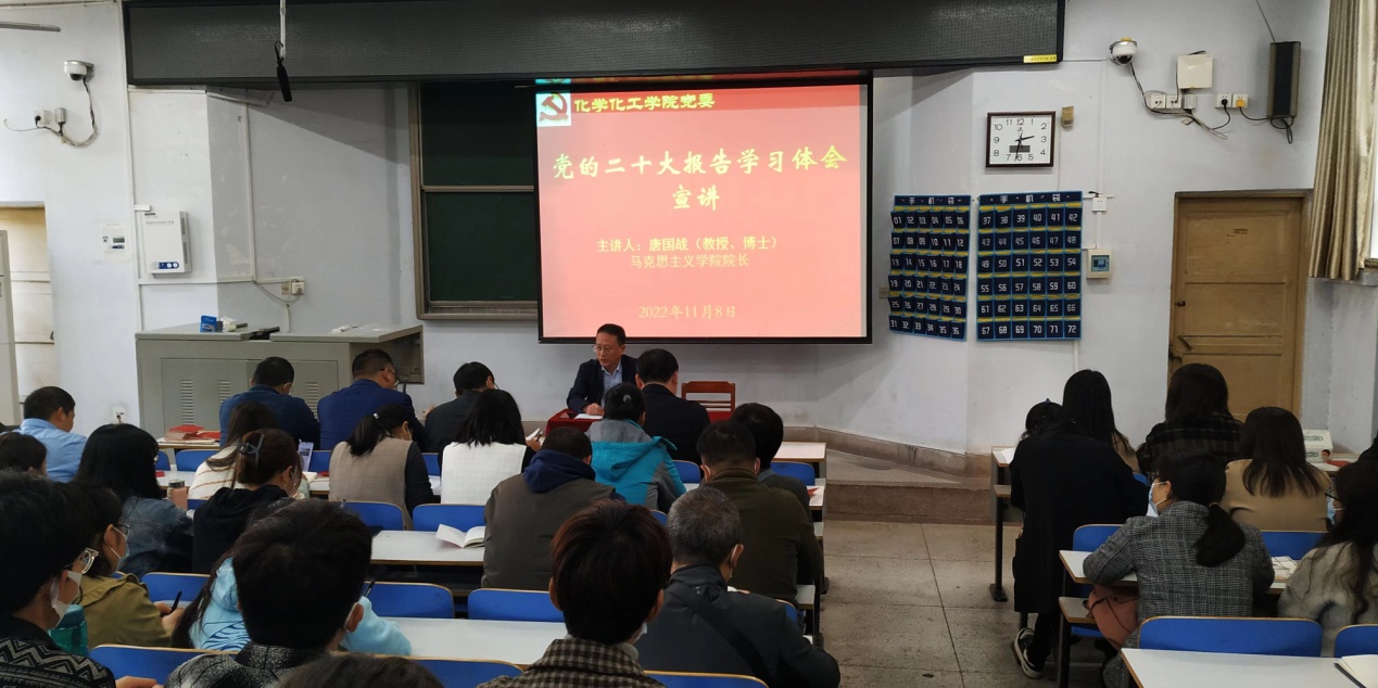 郭鹏明确提出要求,一要切实提高政治站位。学院党委要把学习宣传贯彻党的二十大精神作为当前首要政治任务,根据学校党委安排部署,制定学习计划,精心组织实施。党政班子成员、党支部书记要切实履行第一责任人职责,认真组织学习、抓好贯彻落实。二要切实抓好全面学习。学院党委要通过中心组学习、集中培训、“三会一课”等多种形式,组织党员师生原原本本学习党的二十大报告,全面准确领会精神实质。党员干部要发挥示范带头作用,带动全体党员学习。三要切实推进全面把握。要把握重点,深刻领悟“两个确立”的决定性意义,坚决做到“两个维护”,把思想和行动统一到党的二十大精神上来,把学习成效转化为攻坚克难的强大动力和实际行动,转化为推动学院事业高质量发展的思路举措和生动实践。四要切实推进全面落实。积极推动党的二十大精神贯彻落实,扎实做好当前各项工作。要把学习宣传贯彻党的二十大精神与习近平新时代中国特色社会主义思想、《习近平谈治国理政(第四卷)》、习近平总书记最新重要讲话精神结合起来,以党的二十大精神指引,推进教学科研管理服务,围绕最新部署,着力推动人才培养改革创新、提质创优,具体化、精准化、常态化一体推进党建、事业高质量发展,不忘初心、牢记使命,落实立德树人,用党的创新理论铸魂育人,为党育人、为国育才,思想和行动统一,进一步喊响叫亮“化学化工,勇攀高峰;化学化工,争创先锋”口号,把智慧和力量凝聚到落实任务上来,坚决贯彻落实校党委决策部署,踔厉奋发、勇毅前行,围绕博士立项重点建设单位支撑学科、ESI全球前1%学科、省重点学科、校优势学科、国家一流专业建设点、师范专业二级认证、一流课程建设,科研基金项目奖项创新突破、优秀高层次人才队伍建设、人才培养质量持续提升等重点中心工作,主动作为,积极工作,奋力拼搏,改革创新,党建引领,切实推动学院各项事业高质量创新发展,努力为学校高水平师范大学建设作出新的更大贡献,为党和国家培养更多更优秀堪当民族复兴重任的时代新人交上满意答卷,以实际行动和优异成绩检验学习贯彻党的二十大精神的成效。(永利集团304am登录 冷向宇供稿 曲剧审稿 郭鹏审核)