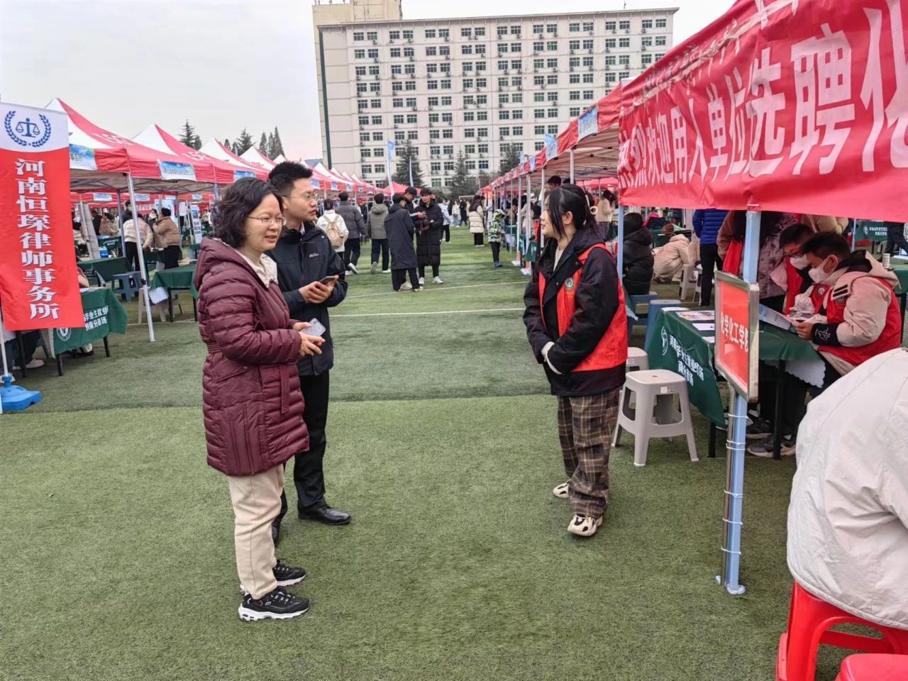 永利集团304am登录党委书记郭鹏、副书记曲剧、就业秘书严赫莅临现场并亲切关心毕业生的就业情况,询问学生的就业意向,为学生精准推荐就业岗位;与用人单位交流,了解用人需求,共同讨论学生在校培养与未来发展。