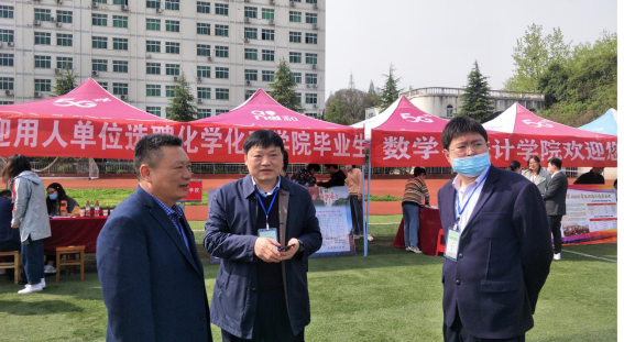 党史学习教育活动中,围绕“学党史、悟思想、办实事、开新局”,针对为师生办实事、办好事、解难事这一关键,积极服务毕业生就业创业,4月10日,由河南省教育厅主办、信阳师范学院承办的“河南毕业生就业市场豫南分市场暨信阳师范学院2021届毕业生线下春季双选会”在学校西操场举行。永利集团304am登录组织毕业生积极参加招聘会,学院党委书记郭鹏、院长井强山、党委副书记吴志伟、毕业班辅导员冷向宇、就业办秘书严赫等就业创业工作领导小组成员莅临招聘会现场,一线开展毕业生就业招聘指导、咨询、服务,并与用人单位以及参与招聘的校友代表进行沟通交流,切实为毕业生办好实事。