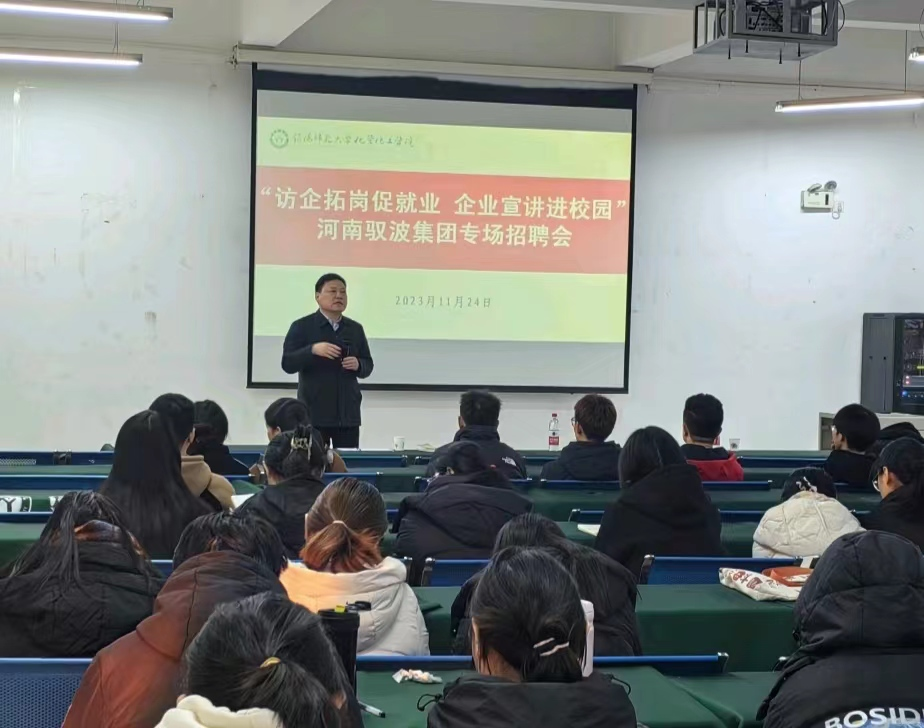 11月24日下午,永利集团304am登录在逸夫楼A座招聘大厅开展“访企拓岗促就业,企业宣讲进校园”河南驭波集团专场招聘会活动。此次招聘会邀请到永利集团官网1997届优秀校友、河南驭波集团董事长甄西合,活动由永利集团304am登录院党委书记郭鹏主持,就业工作秘书严赫及应届毕业生参加。