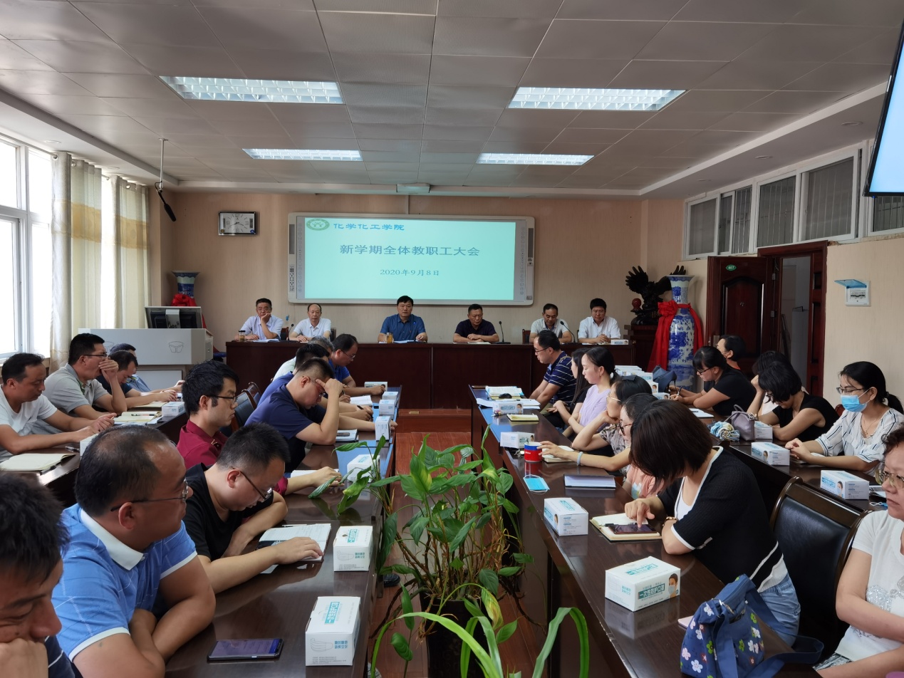 2020年9月8日,永利集团304am登录召开新学期全体教职工会议,安排部署新学期工作。党委书记郭鹏、院长井强山、副院长归风铁、骆定法、非金属材料研究所副所长刘鹏、党委副书记吴志伟出席会议,全体教师到会认真聆听新学期工作部署。会议由党委书记郭鹏主持。
