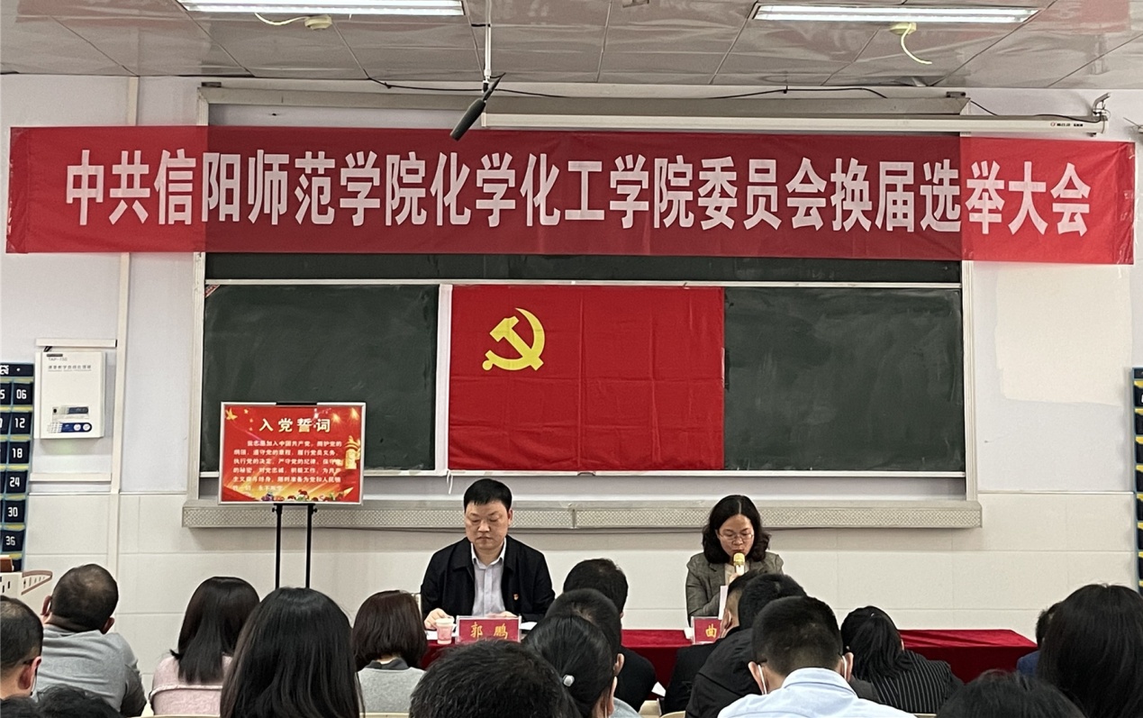 14时30分,大会在庄严的国歌声中开幕。郭鹏同志首先宣读了学校党委组织部《关于同意中共信阳师范学院永利集团304am登录委员会召开换届选举党员大会和新一届委员会委员及书记(副书记)候选人预备人选的批复》。