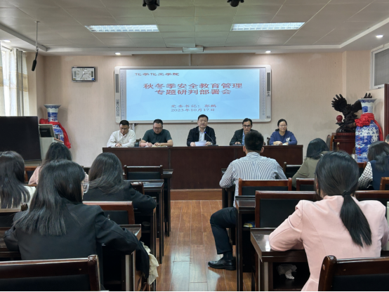 郭鹏强调,安全是一切工作的前提、基础和底线,绝不能有须臾松懈、不能麻痹大意、不能心存侥幸。结合秋冬季节安全教育管理工作特点,就如何进一步抓好学院安全教育管理工作,郭鹏提出三点要求:一是强化政治意识,深刻认识到安全教育工作是学院发展的重要保障和前提。二是坚守安全理念,牢固树立“安全第一”思想不动摇,始终把保障师生员工的生命安全和身体健康放在首位。三是克服麻痹思想,压实安全责任,深入排查各类安全隐患,落实值班值守制度,秋冬季节时段,要重点关注防火防煤气中毒、防实验室危化品安全疏漏、防电气和交通安全、防电信诈骗等安全事故,全员全力做好各类突发事件的预防与应急处置。