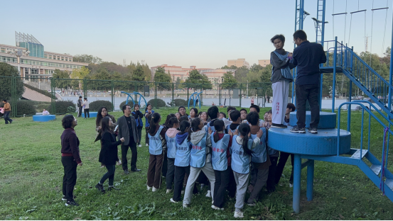 活动正式开始,由大学生心理健康教育中心的袁老师带领同学们在素拓园外进行小游戏,拉近彼此间的距离,让大家熟络起来。