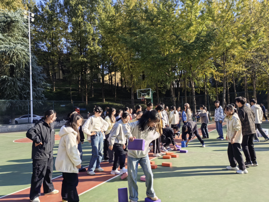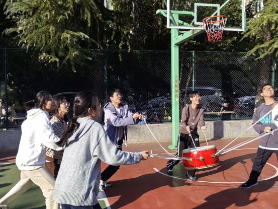 本次秋日素拓活动共包括同心鼓、不倒森林、动力圈、珠行万里、摸石过河砖五个游戏,游戏形式多种多样,互动性强。在同心鼓游戏中,同学们齐心协力,勇于挑战,不断刷新击鼓次数记录;在不倒森林游戏过程中,同学们团结一心,默契配合,考验反应速度的同时又提高了团队协作能力;在动力圈游戏中,大家凝心聚力,转动绳圈,建立起团队信任感;在珠行万里游戏过程中,同学们全神贯注,积极踊跃,培养了团队凝聚力与执行力;在摸石过河砖游戏中,同学们各显身手,想出不同的过“河”方法,精彩纷呈。