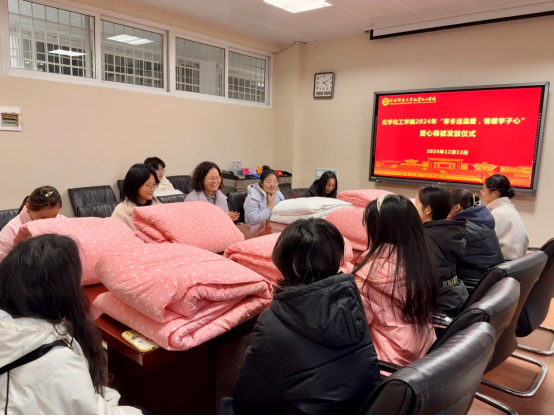 12月13日,永利集团官网在化学楼210会议室举行爱心棉被发放仪式。永利集团官网党委副书记曲剧,辅导员翟成辉出席本次发放仪式。