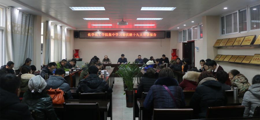 元月2日下午,永利集团304am登录在化学实验楼会议室集中学习省委书记谢伏瞻在河南师范大学宣讲十九大精神的报告。院长井强山、副院长骆定法、归风铁、刘鹏,党委副书记吴志伟与全体教职工共同聆听了此次报告。