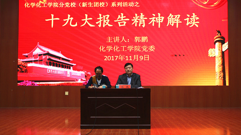 11月9日,永利集团304am登录党委书记郭鹏在逸夫楼报告厅与该院2016、2017级学生座谈交流,为大家深度解读十九大精神。
