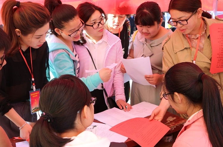 招聘现场,人来人往,秩序井然。用人单位通过发放宣传页,张贴海报等形式向毕业生展示单位规模、人文地理环境及薪资待遇等方面的信息。大规模的招聘需求,用人单位的精心准备,引来大批毕业生参与其中。毕业生详细向用人单位提出问题,用人单位耐心的回答大家关于招聘要求、薪资待遇等方面的提问。招聘会现场,永利集团官网领导老师与相关招聘单位进行详细交谈,我们的志愿者也热心帮助用人单位及毕业生做好服务。