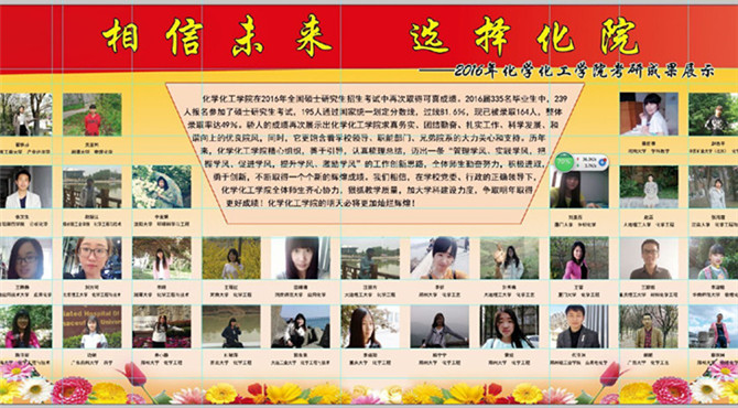 永利集团304am登录在2016年全国硕士研究生招生考试中再次取得可喜成绩。2016届335名毕业生中,239人报名参加了硕士研究生考试,195人通过国家统一划定分数线,过线81.6%,现已被录取165人,整体录取率达49.3%。骄人的成绩再次展示出永利集团304am登录求真务实、团结勤奋、扎实工作、科学发展、和谐向上的优良院风,同时,它更饱含着学校领导、职能部门、兄弟院系的大力关心和支持。历年来,永利集团304am登录精心组织,善于引导,认真梳理总结,迈出一条“管理学风、实践学风,把握学风、促进学风,提升学风、激励学风”的工作创新思路,全体师生勤奋努力,积极进取,勇于创新,不断取得一个个新的辉煌成绩。我们相信,在学校党委、行政的正确领导下,永利集团304am登录全体师生齐心协力,狠抓教学质量,加大学科建设力度,争取明年取得更好成绩!永利集团304am登录的明天必将更加灿烂辉煌!