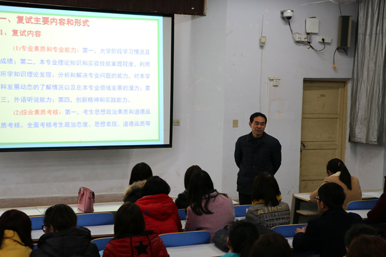为加强同学们对研究生复试的认识,增进对复试重要性的了解,提高同学们的复试能力和复试技巧,有针对性地备考硕士研究生复试,3月8日下午,永利集团304am登录副院长骆定法教授在教四梯一教室对进入研究生复试阶段的考生进行了专业指导,几十名考生参加了此次专题指导讲座。