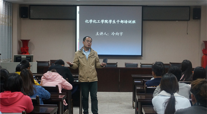 为提高学生干部的综合素质,不断完善学生组织运行机制。11月5日晚,永利集团304am登录在化学实验楼四楼会议室开展学生干部培训讲座。本次讲座由团总支书记冷向宇担任主讲,团总支老师路振国出席,与化院全体班委共同聆听了此次讲座。