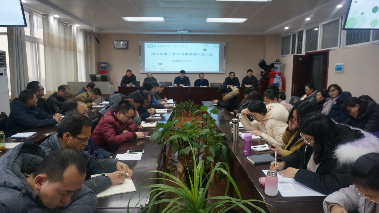 2020年1月3日下午,永利集团304am登录分工会在实验楼407会议室举了2019年度教职工民主管理暨科级干部考核测评大会,学院领导班子成员、全体教职工会员同志参会。会议由学院党委书记、分工会主席郭鹏主持。