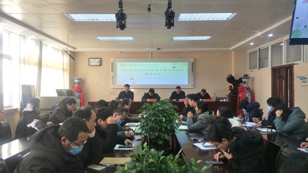 根据《信阳师范学院处级领导班子和处级干部2020年度考核工作方案》〔2020〕40号文件通知安排,2021年1月12日,永利集团304am登录处级领导班子和处级领导干部2020年度考核大会在化学实验楼407会议室召开,学校第二考核组组长、党委委员、统战部长曾伏虎,考核组成员、组织部干部科科长周贤亮等一行,代表校党委考核工作领导小组对永利集团官网处级班子、处级干部述职考核测评进行现场指导,学院领导班子和全体教职工参加了会议。考核会由学院党委书记郭鹏主持。