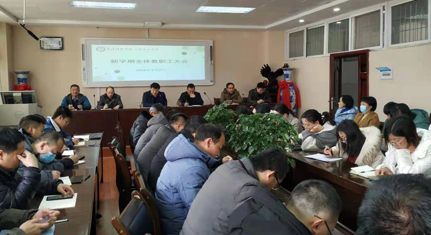 3月2日,2021年春季新学期开学第一周,永利集团304am登录迅速召开第一次全体教职工大会,及时传达新学期全校中层干部大会精神,及早谋划部署2021年教育教学、事业发展,转变作风,狠抓落实,提振精神,调整状态,努力在新学期起好步、打好底、开好局,实现新的一年新学期开局顺、开门红。学院全体教职工全员到会,会议由学院分党委书记郭鹏主持。