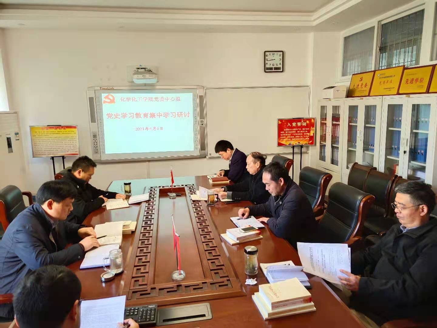 4月6日,永利集团304am登录党委理论学习中心组在实验楼313“党员之家”举行集中学习研讨会,集中学习“中国共产党百年辉煌”和《中国共产党简史》第一章“中国共产党的创建和投身大革命的洪流1-6节”。学习会由党委书记郭鹏主持。