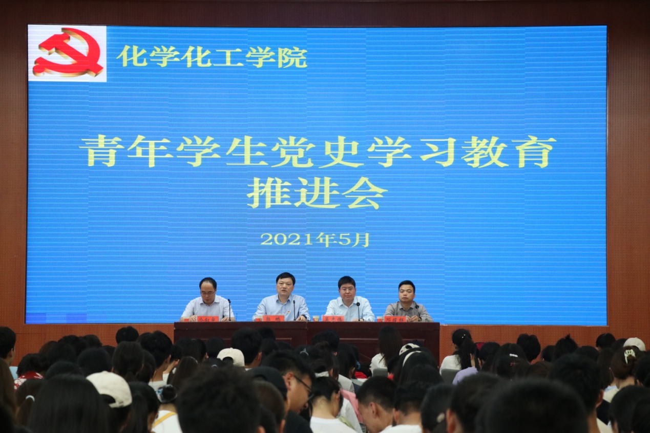 5月9日下午,永利集团304am登录于逸夫楼报告厅召开青年学生党史学习教育推进会。学院党委书记郭鹏、副书记吴志伟、组织员冷向宇、团委老师邓耀辉出席会议,全体学生党员、学生干部以及学生代表400余人参会。会议由冷向宇主持。