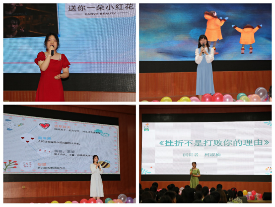 本次大赛在各班级、二级学院心理辅导站组织开展党史学习教育、心理健康教育特色活动推选基础上,最后共有三十五位选手报名正式参加学校层面大赛,经过初赛、复赛,遴选出八名选手进入决赛。在决赛现场,选手们结合PPT,动情讲述了自身的成长历程,涉及童年经历、亲子关系、学习挫折、大学迷茫等多个主题。4号选手李蓓深情讲述了曾经以为爱会消失而委屈自怜的一段经历,倡导同学们去发现生活中的爱与温暖。5号选手朱灵以自己在高中的学习经历鼓励同学们永不放弃自我,成功终将来到。9号选手薛杨杨则以星星寓意自己希望和追求,与同学们真诚分享了自己穿越苦难,收获满意自我的心得。