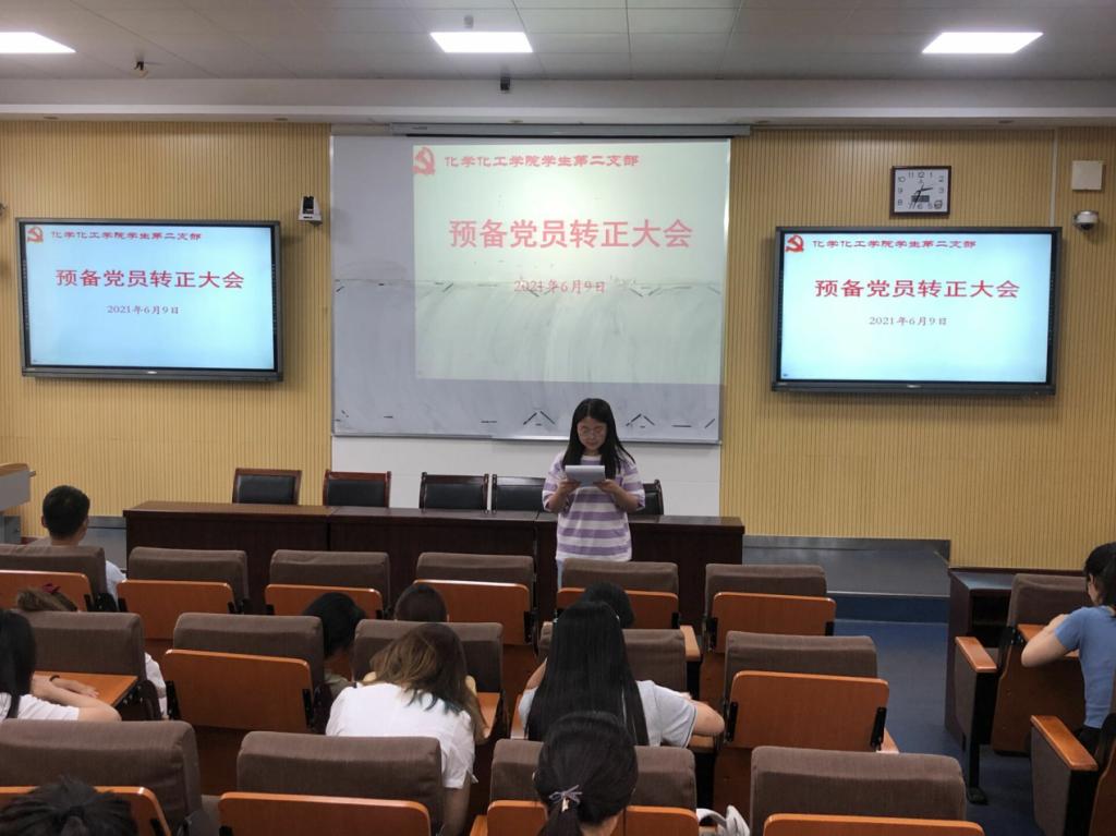 为进一步扩大党员队伍,严格履行党章规定的预备党员转正手续,2021年6月9日,永利集团304am登录学生第二支部在教四楼T2室召开预备党员转正大会,学生第二支部13名正式党员和25名预备党员参加本次大会,其中有6名预备党员转为正式党员。