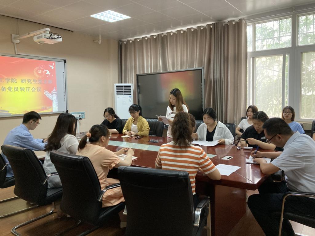 为进一步扩大党员队伍,严格履行党章规定的预备党员转正手续,2021年6月9日,永利集团304am登录研究生支部在实验楼210室召开预备党员转正大会,研究生支部7名正式党员和9名预备党员参加本次大会,其中有2名预备党员转为正式党员。
