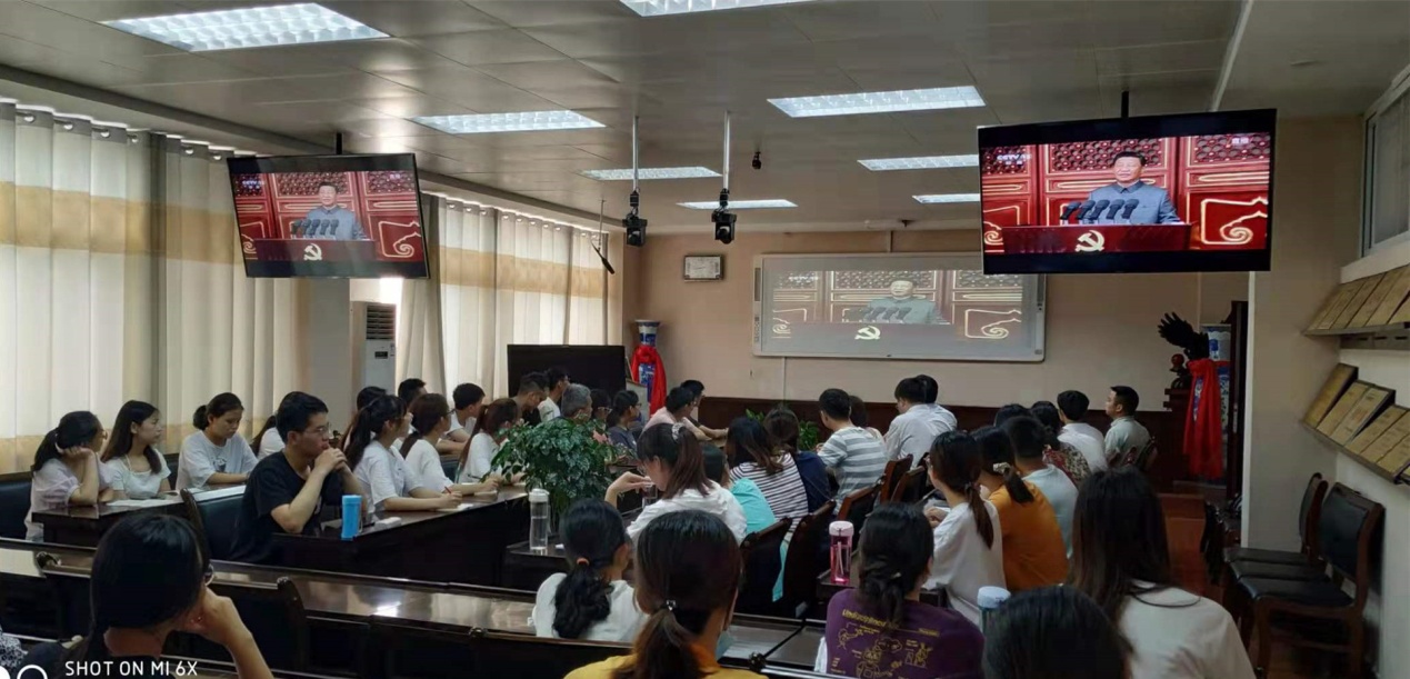 7月1日上午8时,庆祝中国共产党成立100周年大会在北京天安门广场隆重举行。中共中央总书记、国家主席、中央军委主席习近平出席并发表重要讲话。永利集团304am登录党委书记郭鹏带头组织师生100余人在化学实验楼407会议室集中收看现场直播。