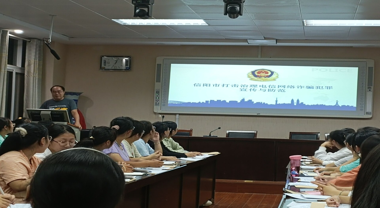 活动伊始,班级班主任、辅导员老师为大家介绍了开展反诈防骗活动目的及纪律要求,并为新生讲解了关于宿舍安全卫生的一些注意事项,强调一定要将宿舍安全落到实处,各宿舍舍长应负起责任,协调宿舍成员整理好个人的物品,将安全牢记于心。宣讲由信阳市公安局提供的以“防电信诈骗”为主的宣传教育PPT。结合实际事例,详细为大家介绍了三种主要诈骗方式的定义、案件启示和防范措施,提醒2021级新生提高警惕,避免各种诈骗事件在自己身上发生。