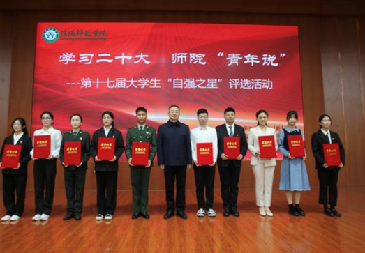 11月24日,我校第十七届大学生“自强之星”评选活动在逸夫楼报告厅举办。校党委书记王文鹏出席并为“自强之星”获得者颁奖。党委办公室(维稳办)、党委学工部、招生就业处、校团委等单位相关负责同志,部分学院党委副书记,各学院(书院)团委书记和学生代表参加活动。