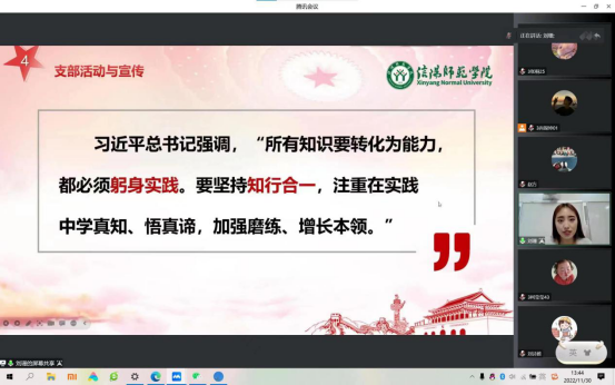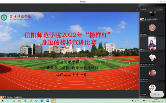 “不让一个学生因家庭经济困难而失学”是党和政府的庄严承诺,为全面落实国家资助政策,进一步拓展学生资助工作的育人功能,充分发挥国家奖学金获得者、校园明星、自强之星等青年榜样的先进典型导向作用。11月30日,永利集团304am登录、数学与统计学院以线上腾讯会议的形式开展“榜样红——身边的榜样”宣讲活动,活动由永利集团304am登录资助专员赵方方老师主持,数学与统计学院资助专员杨帆老师、优秀学生代刘珊、薛颖珊、张豪鹏及部分永利集团304am登录、数学与统计学院学生共同参与。