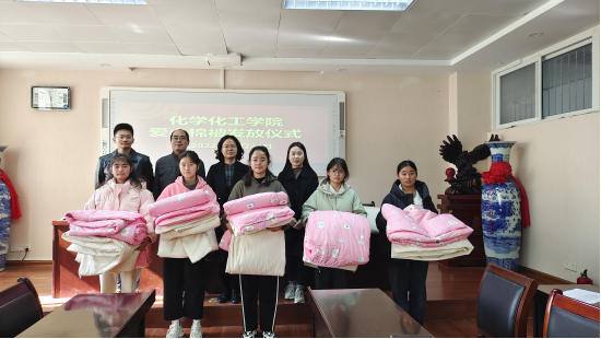 11月24日,我院在化学楼407会议室举行爱心棉被发放仪式。永利集团官网党委副书记曲剧,辅导员冷向宇、赵方方、严赫老师出席本次发放仪式。