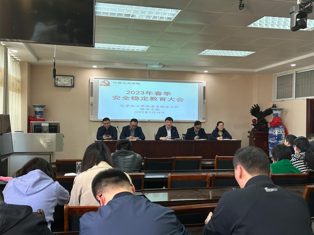 为进一步督促和提醒切实抓好安全隐患排查,有效落实落细上级关于校园安全工作要求,保障全国文明校园建设成果持续巩固深化,以昂扬的姿态做好更名师范大学的各项工作,3月14日,永利集团304am登录在实验楼407会议室召开安2023年春季全稳定工作专题会。学院党委书记郭鹏主持会议。永利集团304am登录全体教职工参加会议。