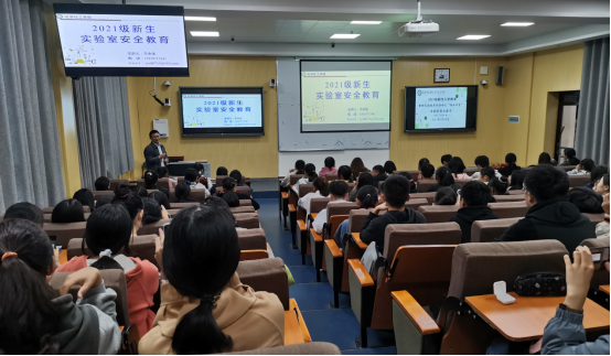 实验室安全“讲一讲”。10月中旬,该院邀请在实验室管理一线工作的于永生博士分专业为2021级新生进行了三场实验室安全教育讲座。于永生结合自己的经历与感受,向新生们详细介绍了实验室安全管理的各项举措,并通过近几年发生的实验室安全事故案例警示教育实验室安全重在对实验室安全条例的遵守,重在提高安全防范意识和技能,重在防患于未然。
